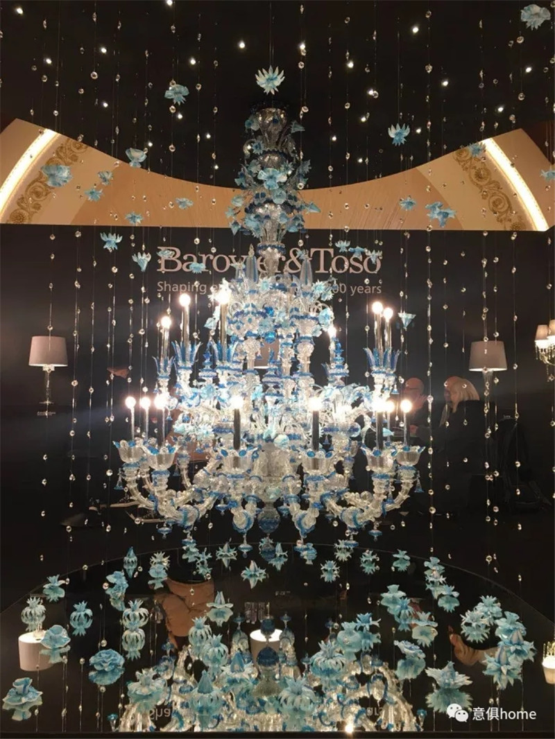 在此次展會中,Barovier&Toso帶來了枝型吊燈,在燈光的照射下,水晶熠熠生輝。