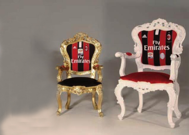這是一張由Gianluca Zambrotta的球衣制作的椅子,背后則是由球衣制作的畫,這些歷史的時(shí)刻,通過藝術(shù)家GEMELLI MILANO,用藝術(shù)的形式展現(xiàn)出來。