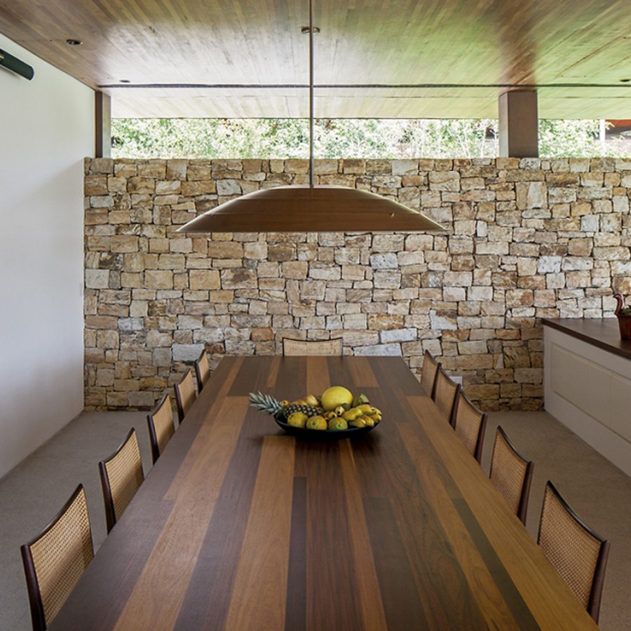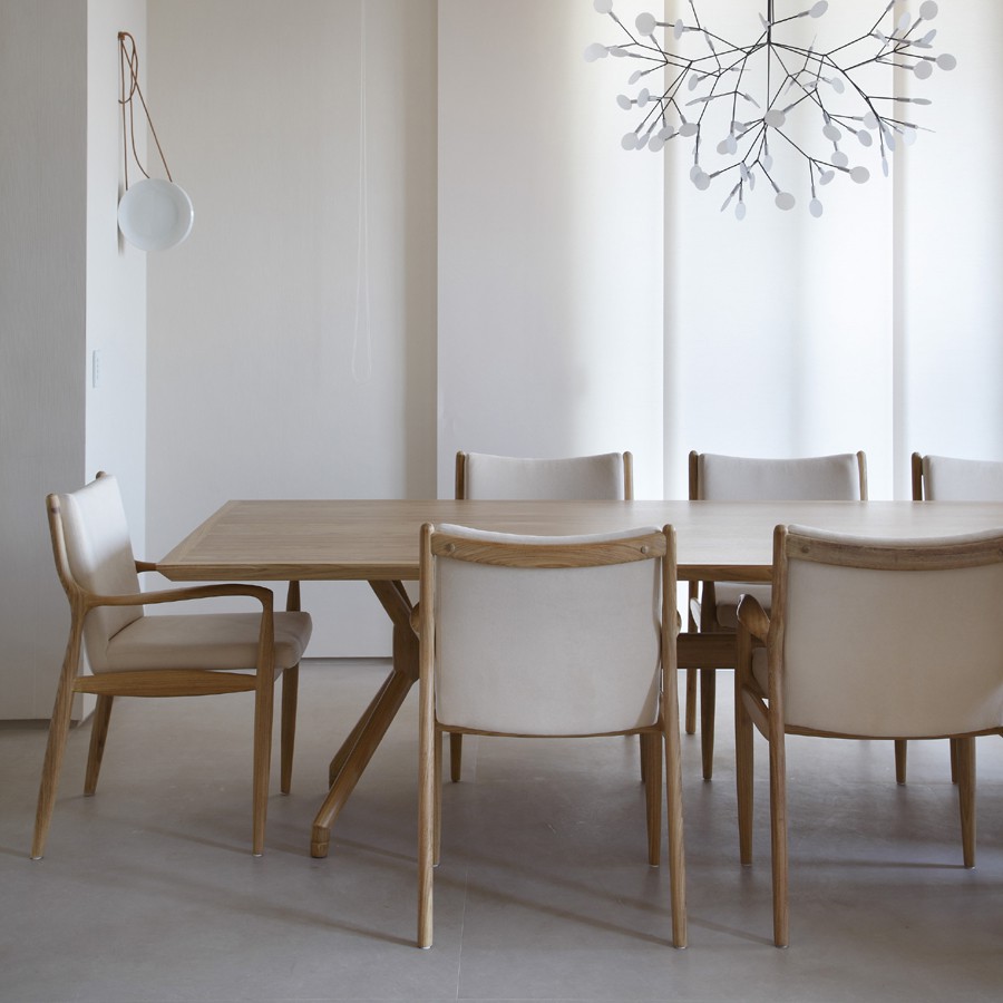 內部裝修及家具大多使用了原木色和純色,簡約的風格使房子更添一份寧靜,室內外形成柔和的視覺呼應。