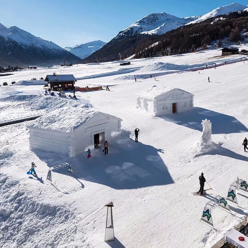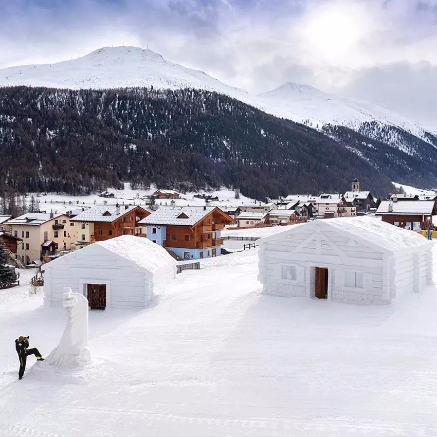 意大利人卻在大雪里,蓋了兩棟雪屋。