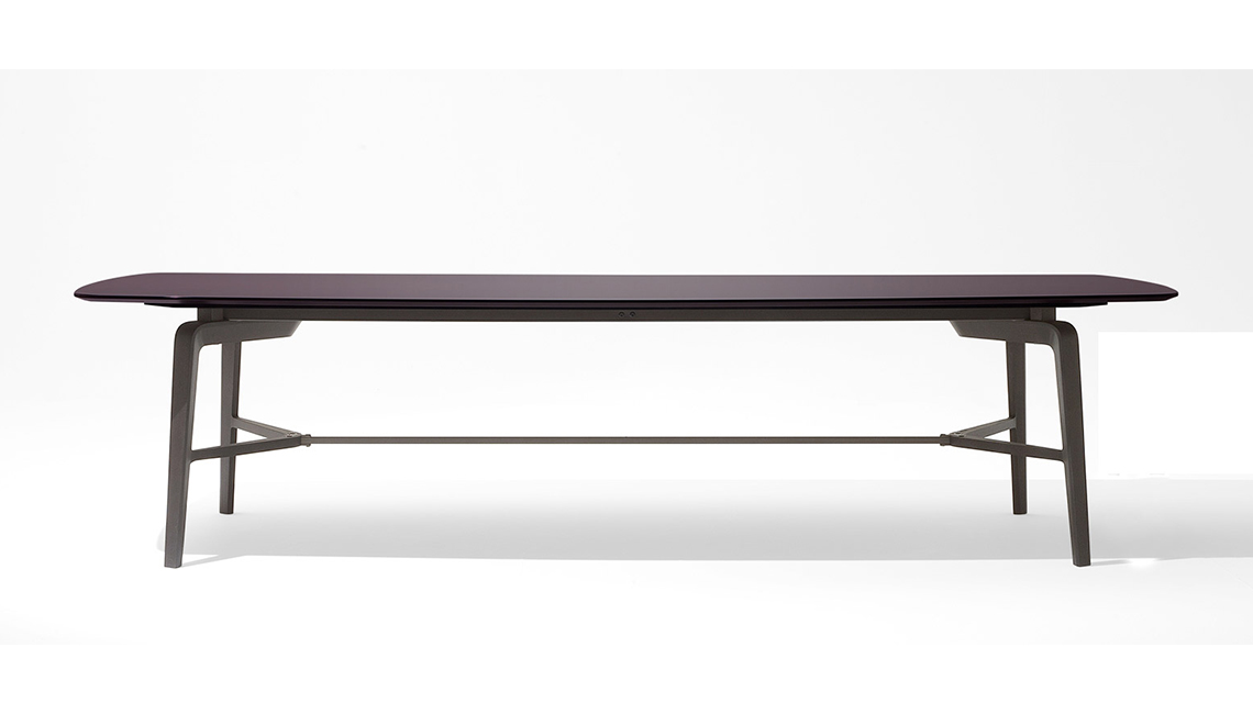 GIORGETTI BIGWIG,這款桌子的設(shè)計來自于意大利知名設(shè)計師羅伯特·拉澤羅尼,Tycoon以胡桃木為原料,鏤空出幾個矩形后用灰色鋼化玻璃或大理石嵌入,桌角用覆蓋著皮革的胡桃木桌腿和古銅膚色的腳帽,營造一種高級感。