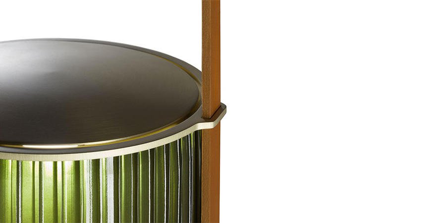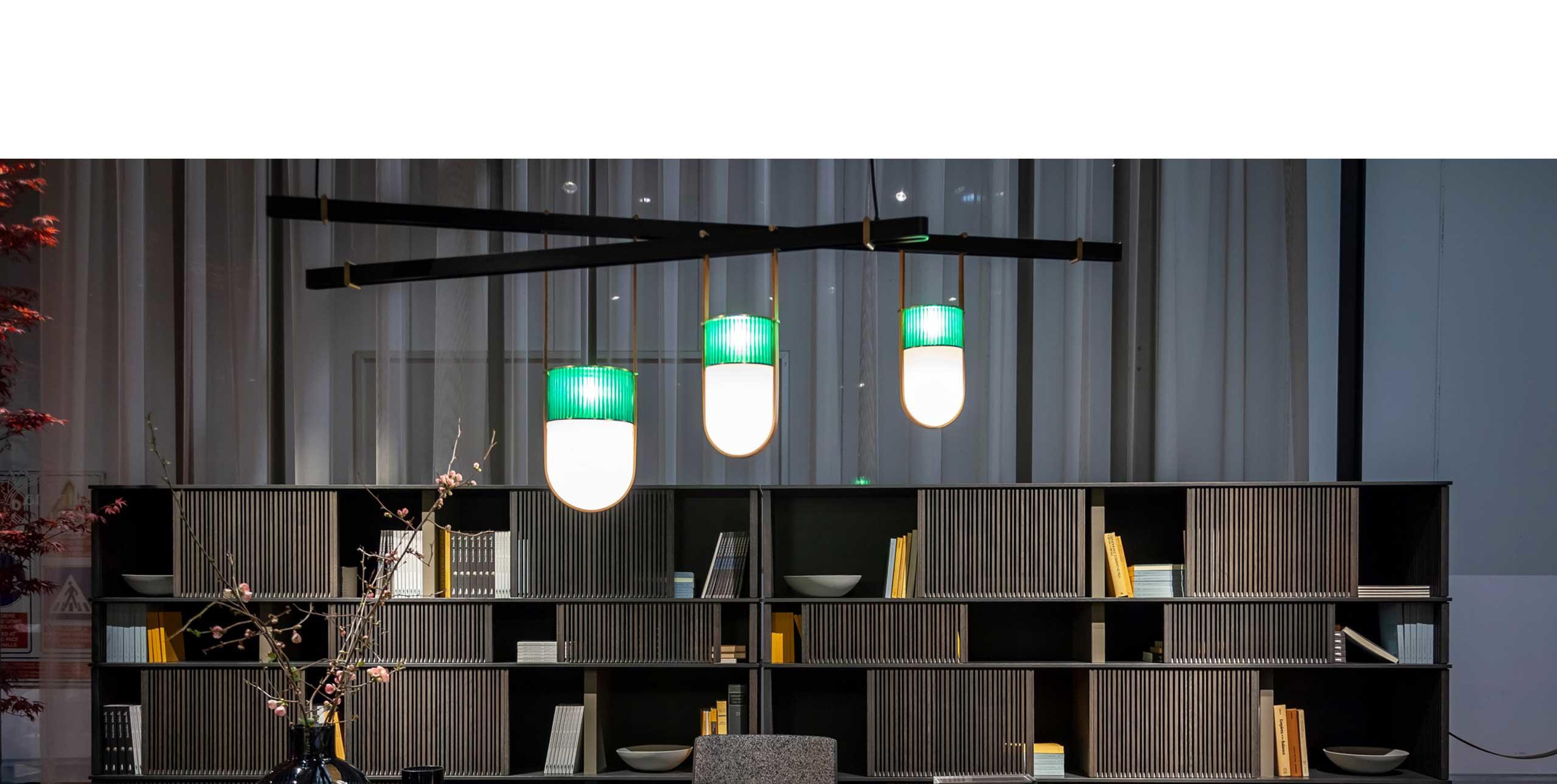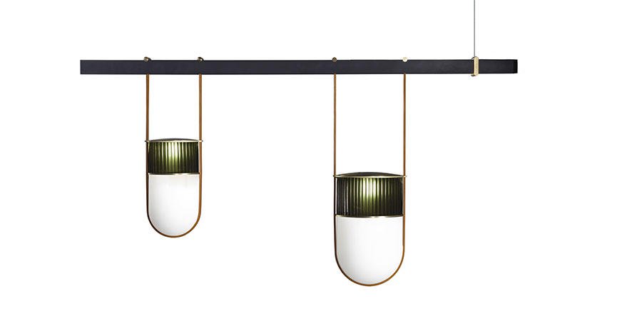 吹制的玻璃和馬鞍皮制成的燈線就像燈籠一般,使燈具的整體造型如純凈的線條和精致的材料對(duì)比,將吹制玻璃的兩種元素結(jié)合在一起,上部玻璃有一個(gè)特別均勻的表面,是透明的陰影琥珀(祖母綠、藍(lán)寶石或月亮石),下半部分由一部分珍珠制成,只為讓光線更溫暖更加發(fā)散!