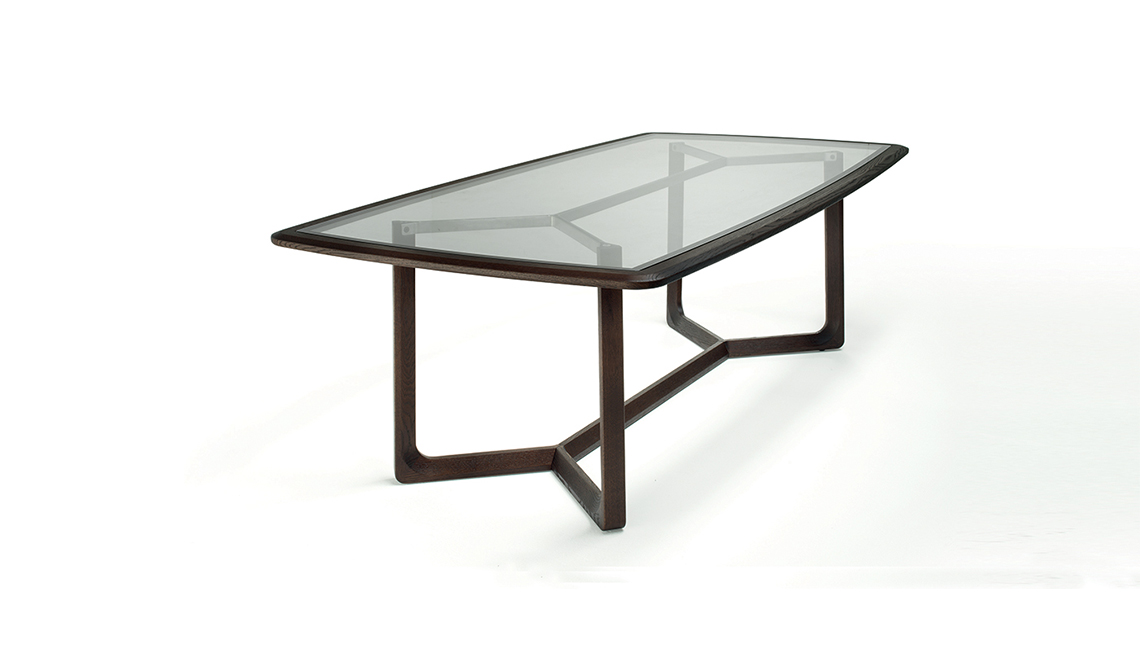 除此之外,NATUZZI2018新品還設(shè)計(jì)了餐桌,透明玻璃面板結(jié)合木質(zhì)支架,在底部桌角的設(shè)計(jì)里加入了小心機(jī),讓看起來(lái)平常的設(shè)計(jì)大放光彩,提高了氣質(zhì)和顏值。