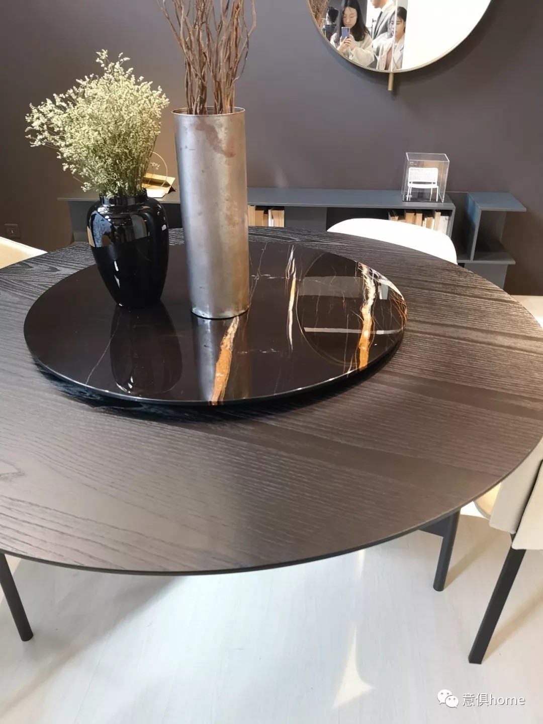 一直以來,我們都認為,大理石和金屬是西方專屬符號,而木頭是中式審美的代表,那么當這三者相結合,又會有怎樣的火花呢?采用中式家庭都喜愛的圓桌設計,用金屬來“切割”堅硬厚實的大理石材質,并用溫暖木質加以潤色。