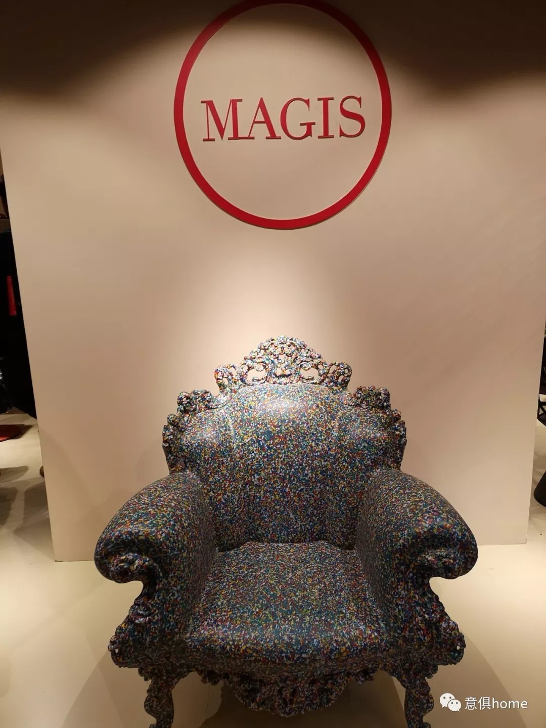 在Magis的展位除了可以看到往年的經典產品,Inga Sempé 設計的2018新系列Vitrail鏡子也特別惹眼,設計師從威尼斯鏡子獲得靈感,采用對比色創作了這個系列,通過注塑橡膠框架結合在一起,造型看起來簡單卻充滿吸引力。