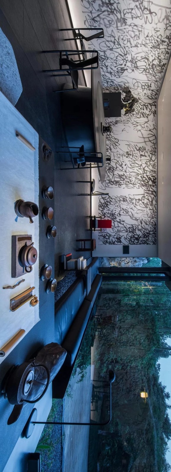 整體色調(diào)呈現(xiàn)黑色,到處都是濃墨重彩的味道,陳林老師將中國(guó)筆墨文化借鑒其中,并發(fā)揚(yáng)光大,不禁讓來(lái)自國(guó)外的設(shè)計(jì)師折服。