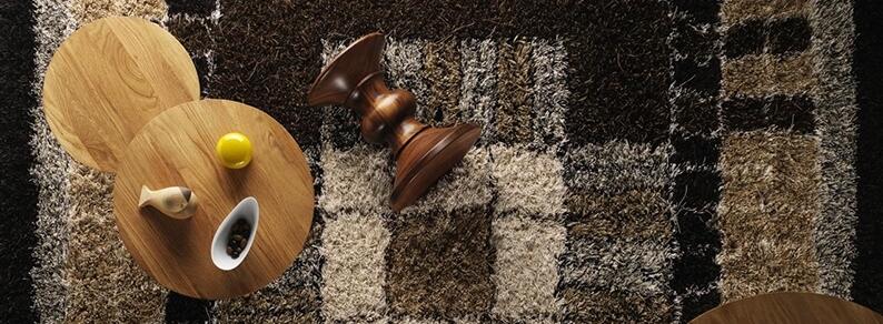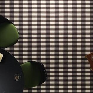 格子系的地毯,不同的顏色拼接,或在純色地攤上用不同顏色的線隔開,