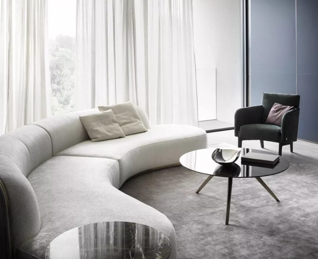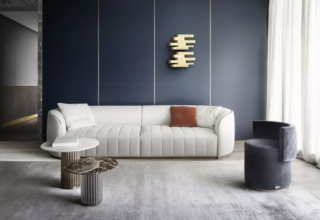 Rugiano以制作沙發著稱,整體上雖然是長方形輪廓,但擁有柔軟和溫暖的外形,線條設計耐人尋味,融合了簡練明快的現代時尚造型。