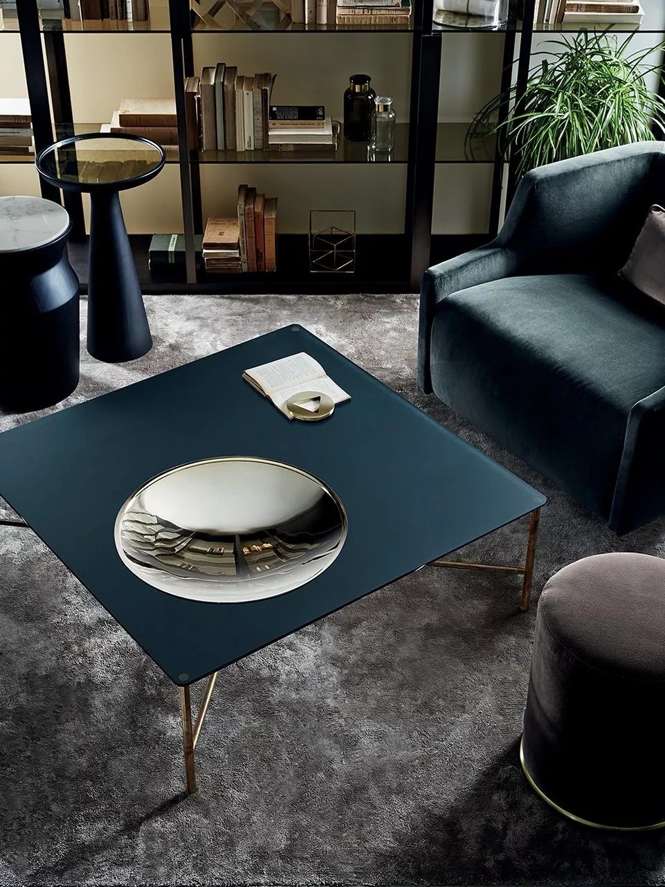 除此之外,Gallotti&Radice在不銹鋼、黃銅、鋁等多種材料與玻璃結合的設計運用中,以優(yōu)雅的玻璃主體呈現家具輕盈通透的懸浮視覺,輔以金屬材質凸顯作品的精致與奢華感,同樣表現的游刃有余。