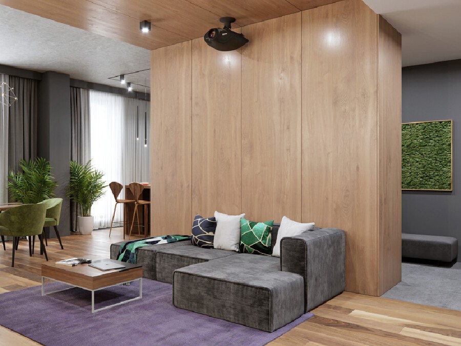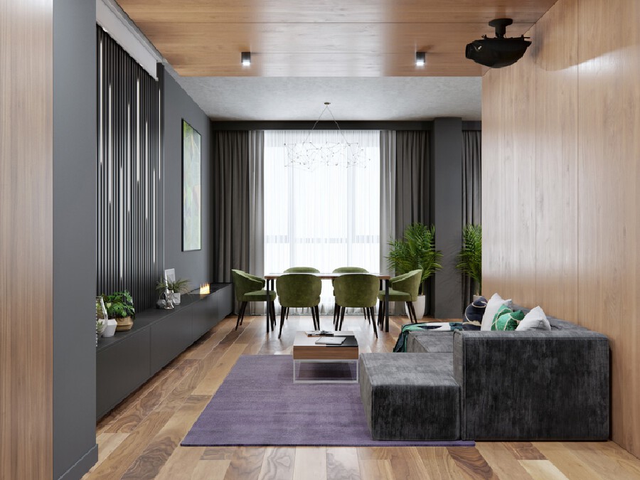 空間的跳色設計中,紫色往往是位“調解員”。在彩色的空間里,一抹紫色的身影可以中和過于活潑的氣氛,起到適度冷靜的作用。而在黑灰色空間里,紫色又可以輕而易舉的將原本沉悶的氣氛打破。
