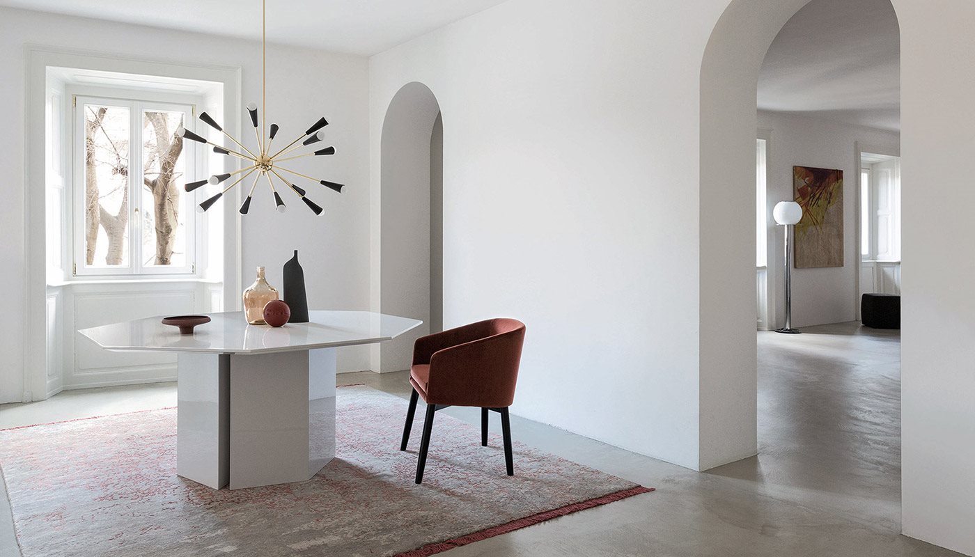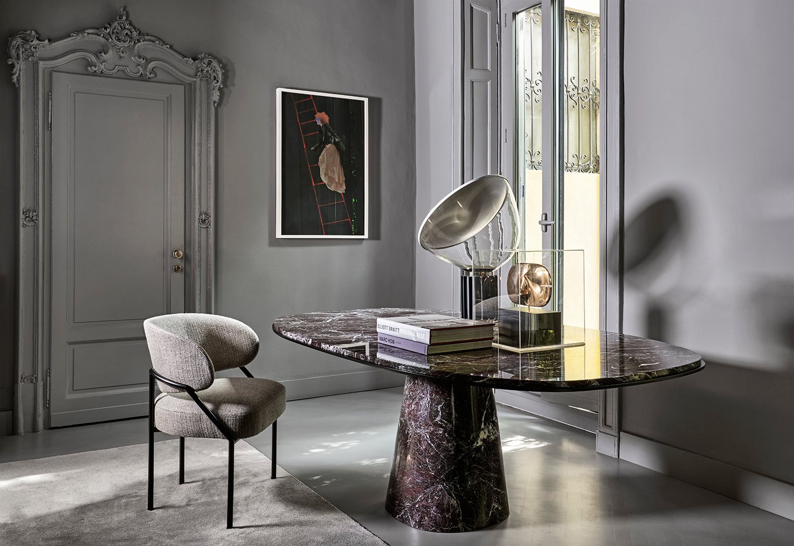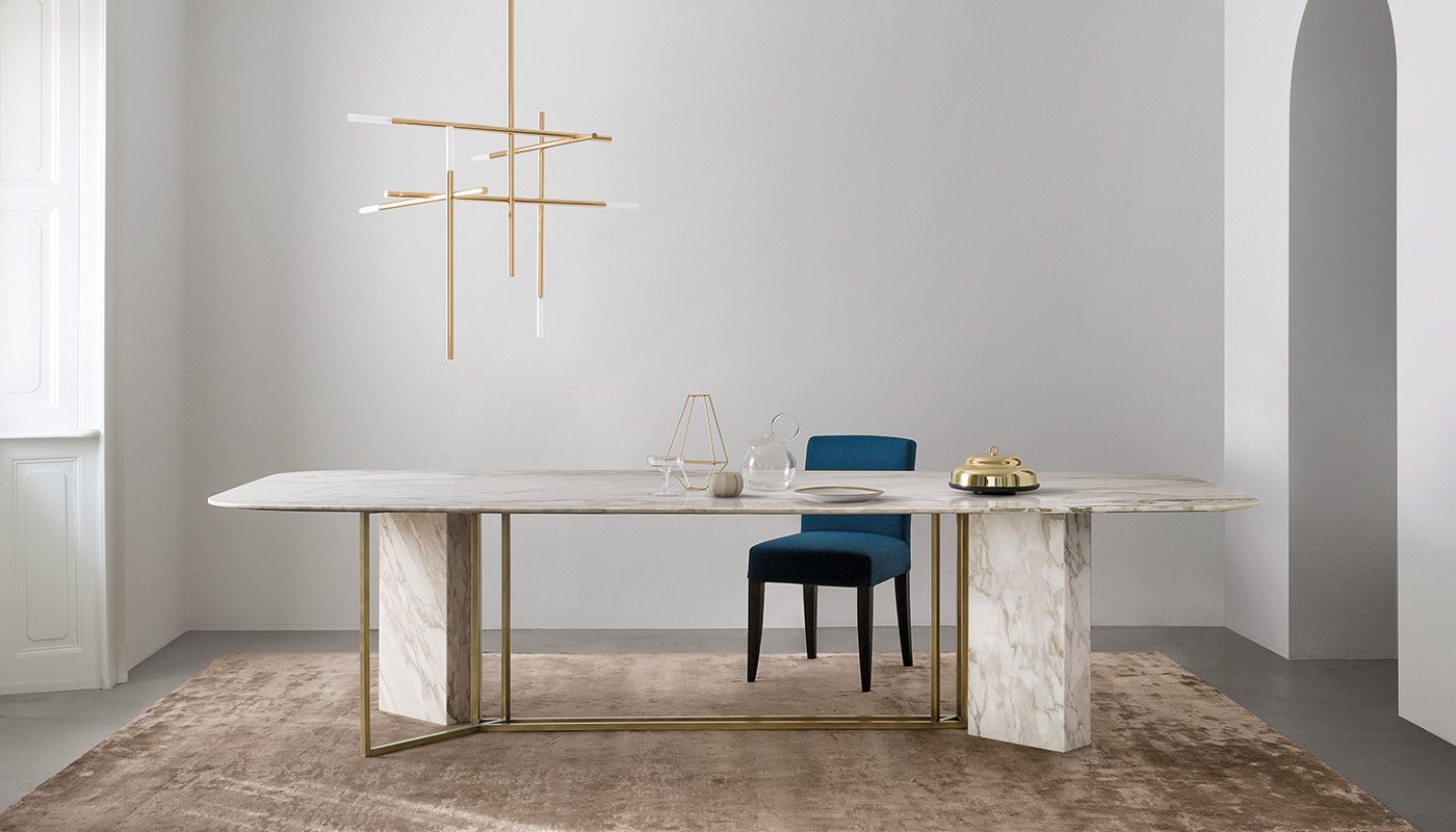 Plinto系列餐桌是Meridiani Editions第二個系列的核心。這款餐桌以純線條和建筑結構為設計特點,視覺上非常的有棱角感和藝術性。黃銅與大理石、木材或漆面的搭配,讓餐桌蒙上了古典的風格,建筑幾何的運用又非常的富有現代感。