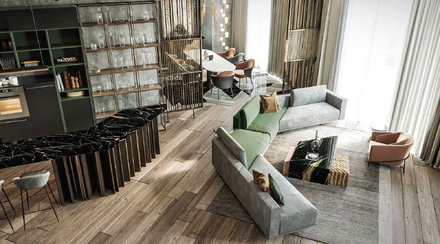 今天小意介紹的這套國外輕奢風大平層,用豆蔻青、肉桂色和姜黃色等暖色系,搭配出了一個溫潤低調又特別有氣質的家居空間。