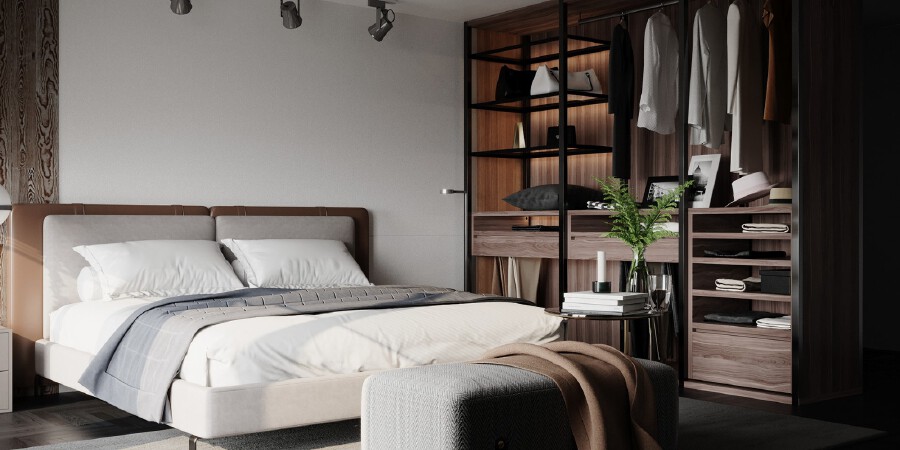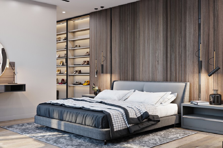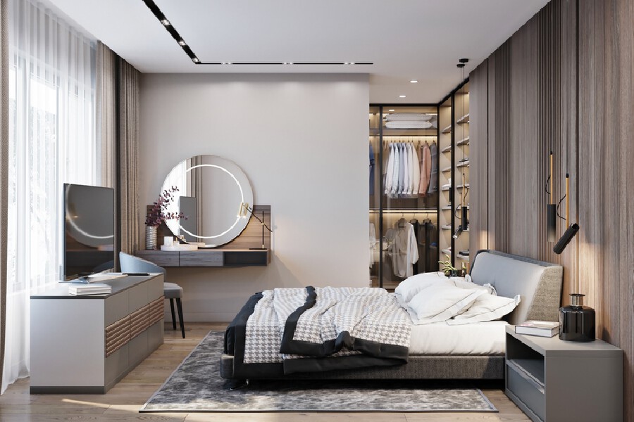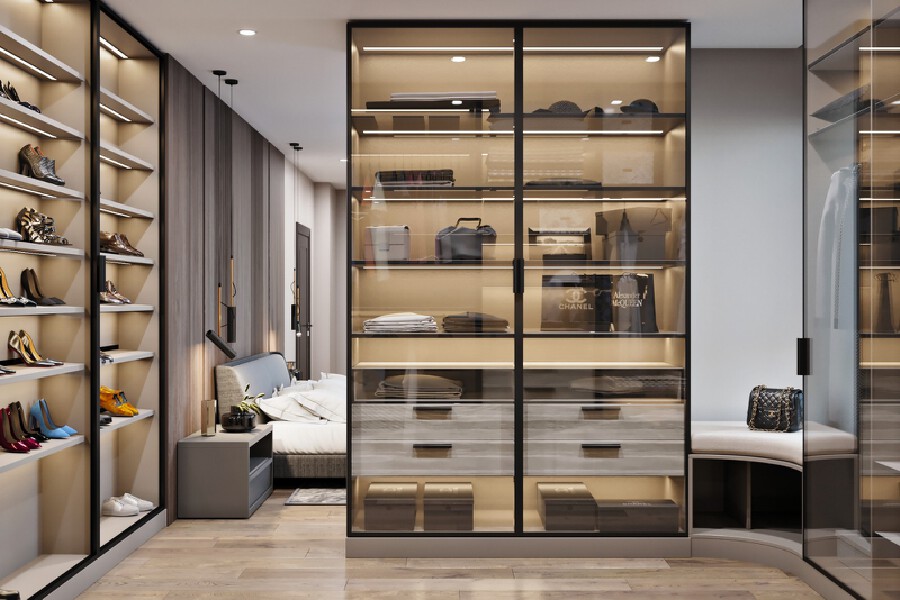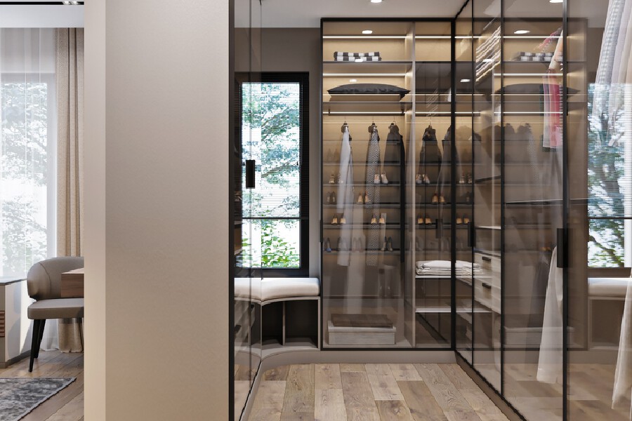 步入式的衣帽間選擇了玻璃拉門,節省了屋主找尋的時間,實用性更強。