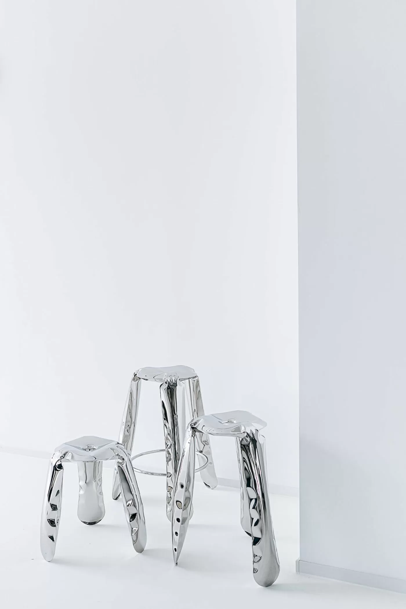 The PLOPP stool is a flagship of Zieta Studio and a symbol of Oskar Zi?ta’s research into the properties and possibilities of metal. The “Polish Air-Pumped Folk Object” proves how the artistic aspects of the design can be summarized in highly advanced engineering forms. Winner of the Red Dot Design Award 2008, the German Design Council Award 2008, and the Forum AID Award 2009. PLOPP is a manifesto of the FiDU technology and the “controlled loss of control” process. Two ultra-thin steel sheets are welded together around their edges and inflated under high pressure, deforming a 2.5D flat form into a 3D object.