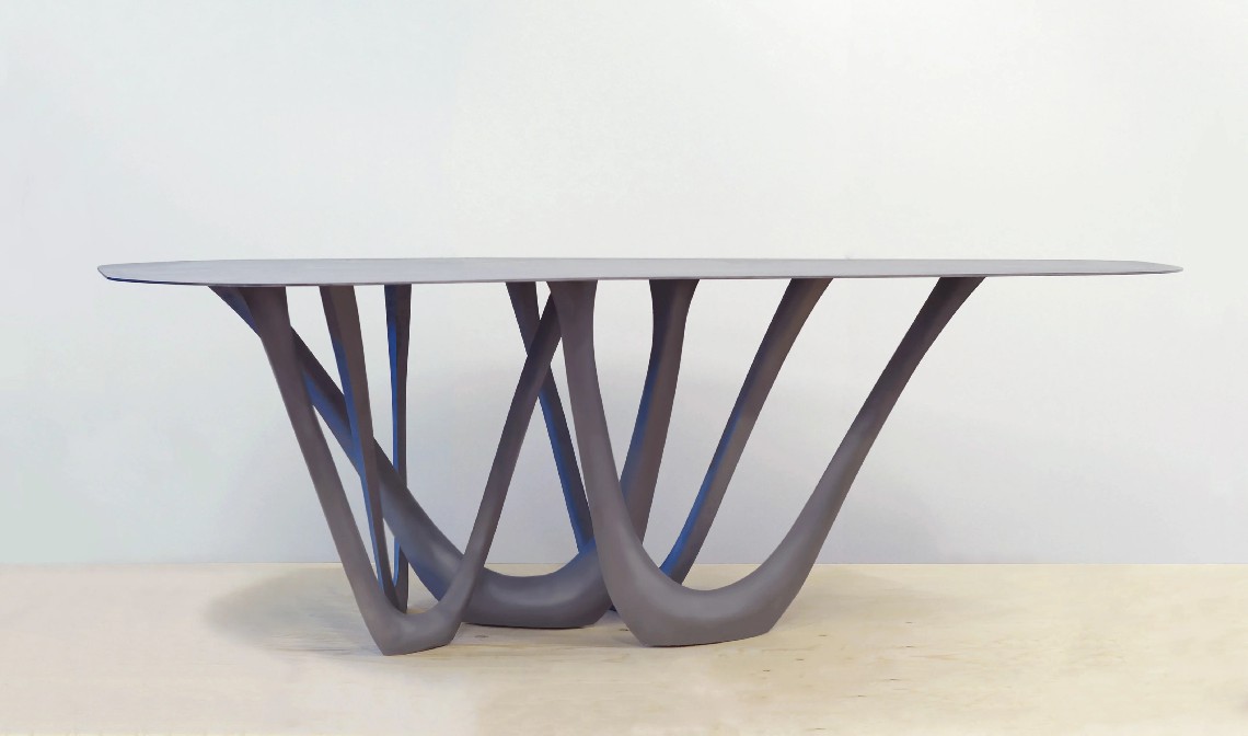 We use parametric design software to generate G-Table form. Modifying a few variables lets us create a miniature model as well as a huge pavilion. Delicate structure of table legs may become stocky and dominating. All those factors cause G-Table to be not only an effect of the process, but also a process itself. G-Table’s base consists of parabolic forms. Made with FiDU technology, it reminds of vines or tree roots. Nature symbolizes a constant changeability and harmony that comes out of it. Diverse structure of G-Table refers to both natural forms and processes.